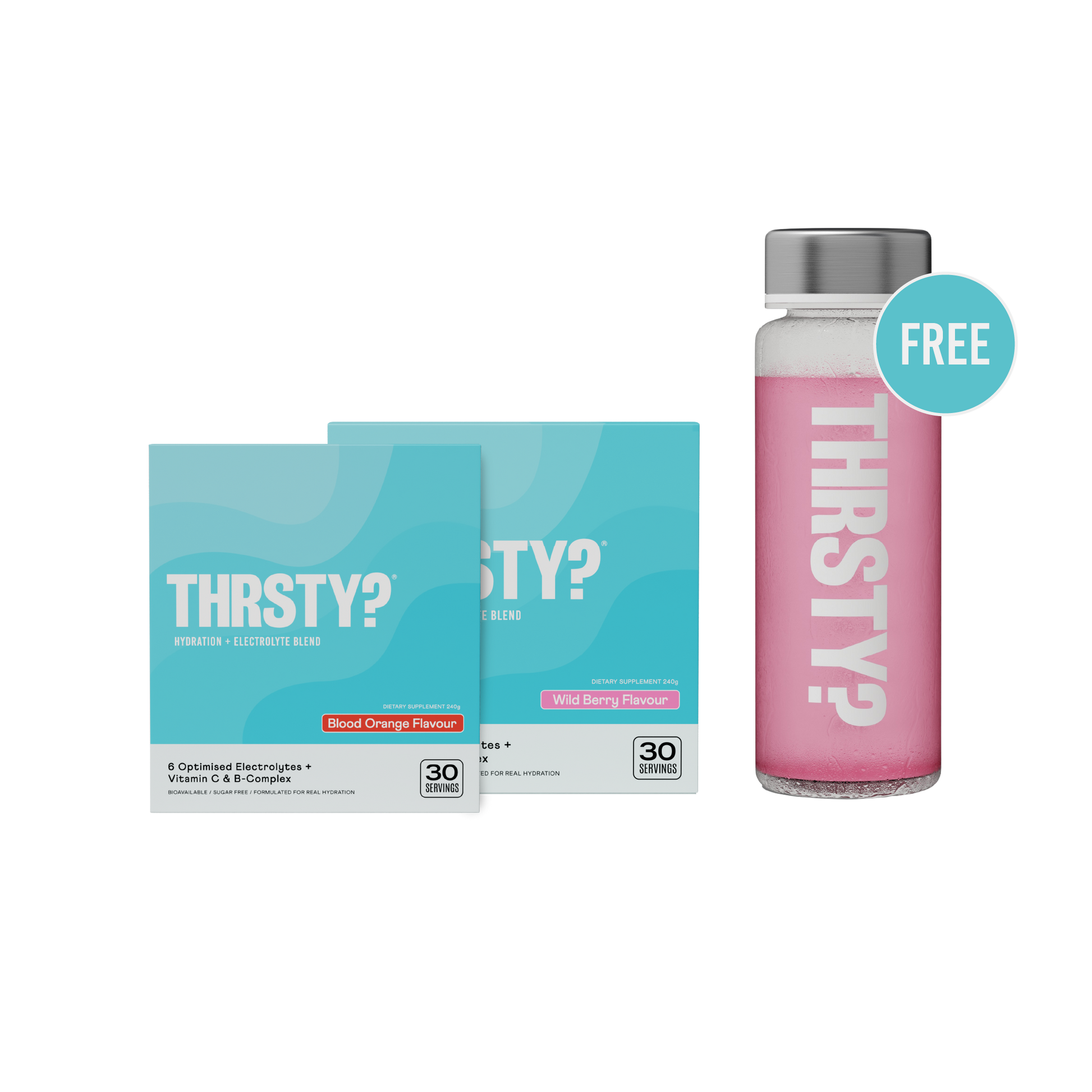 Hydration only matters if water reaches your cells. That requires electrolytes in the right balance and forms your body can actually absorb. Most drinks miss that part. THRSTY doesn’t.